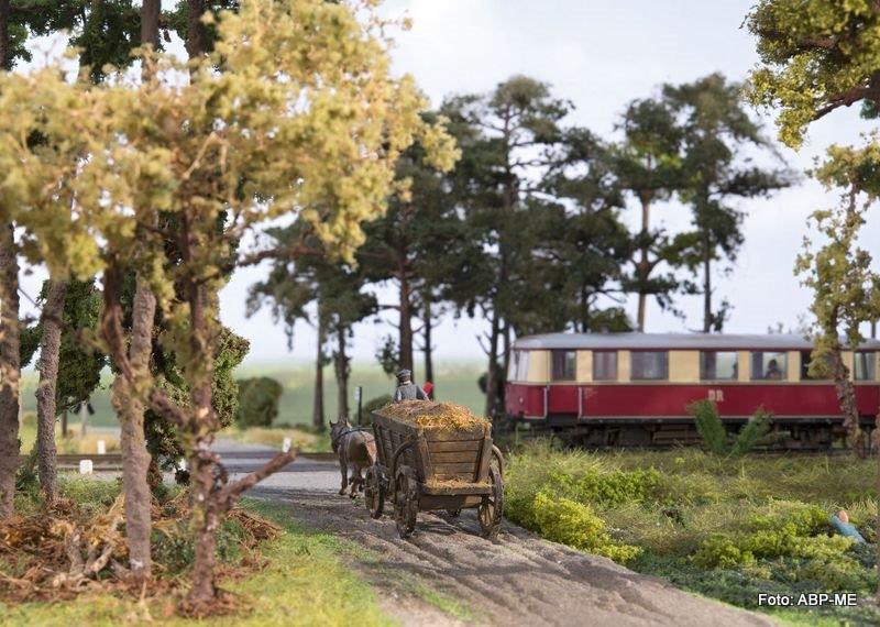 Im Gegensatz zur Haltestelle Flessau mit hinter dem Bahnsteig anschließender Ladestraße verfügt Stapel über eine parallel zum Streckengleis liegende Ladestraße. Dieser Unterschied war mit ein Grund für die Entscheidung, Stapel nachzubauen. Diese Betriebsstelle ist exemplarisches Beispiel zu einer Haltestelle (Haltepunkt mit Anschluss-gleis/Ladestraße) und deshalb von uns so ausgewählt. Hier gibt es keine planmäßigen Zugkreuzungen oder -über-holungen. Leicht gekürzt ist Stapel die einzige Betriebsstelle, die auf einem Anlagenteil Platz findet. Für unser Anlagen-projekt ist Stapel ein typischer Nebenbahnstandort einfacher Ausführung. Der kurze Bahnsteig mit Sandaufschüttung besaß eine feste Kante. Die Ladestraße erhielt beidseitigen Anschluss und war mit Kopfstein gepflastert, ähnlich auch die kurze Rampe.